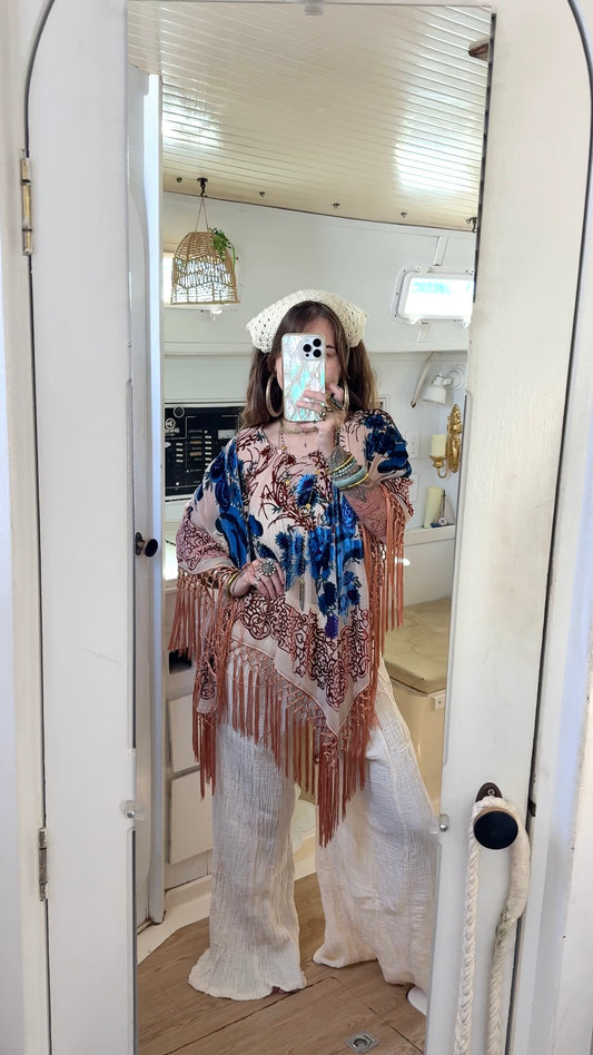 Earth in Echos aesthetic blends inspiration from around the globe. Many pieces inspired by the rich and beautiful region of South Asia. Our aesthetic is often described as bohemian, a style historically influenced by Romani traditions. We acknowledge these roots with honor, gratitude, and recognize the deep history and artistry behind these styles. The spirit we embrace is guided by a profound respect for the traditions that inspire us and do not claim these styles as our own. Earth in Echo celebrates artisanal craftsmanship, supports fair-trade and ethical sourcing, the artists we work with, and sharing unique meaningful designs.