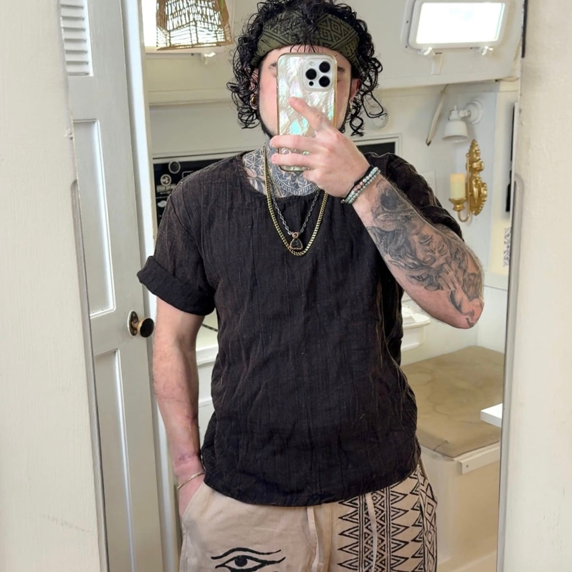 Creation Process: These pieces are meticulously handmade using premium, organic, raw materials and chemical free dyes. The team of artisans who took part of the creation process are not only paid a living wage, but create everything from scratch using sustainable zero waste practices. Crafted by skilled local artisans, these garments are created in harmony with nature- designed to honor the Earth while inspiring balance and mindfulness in your everyday life.