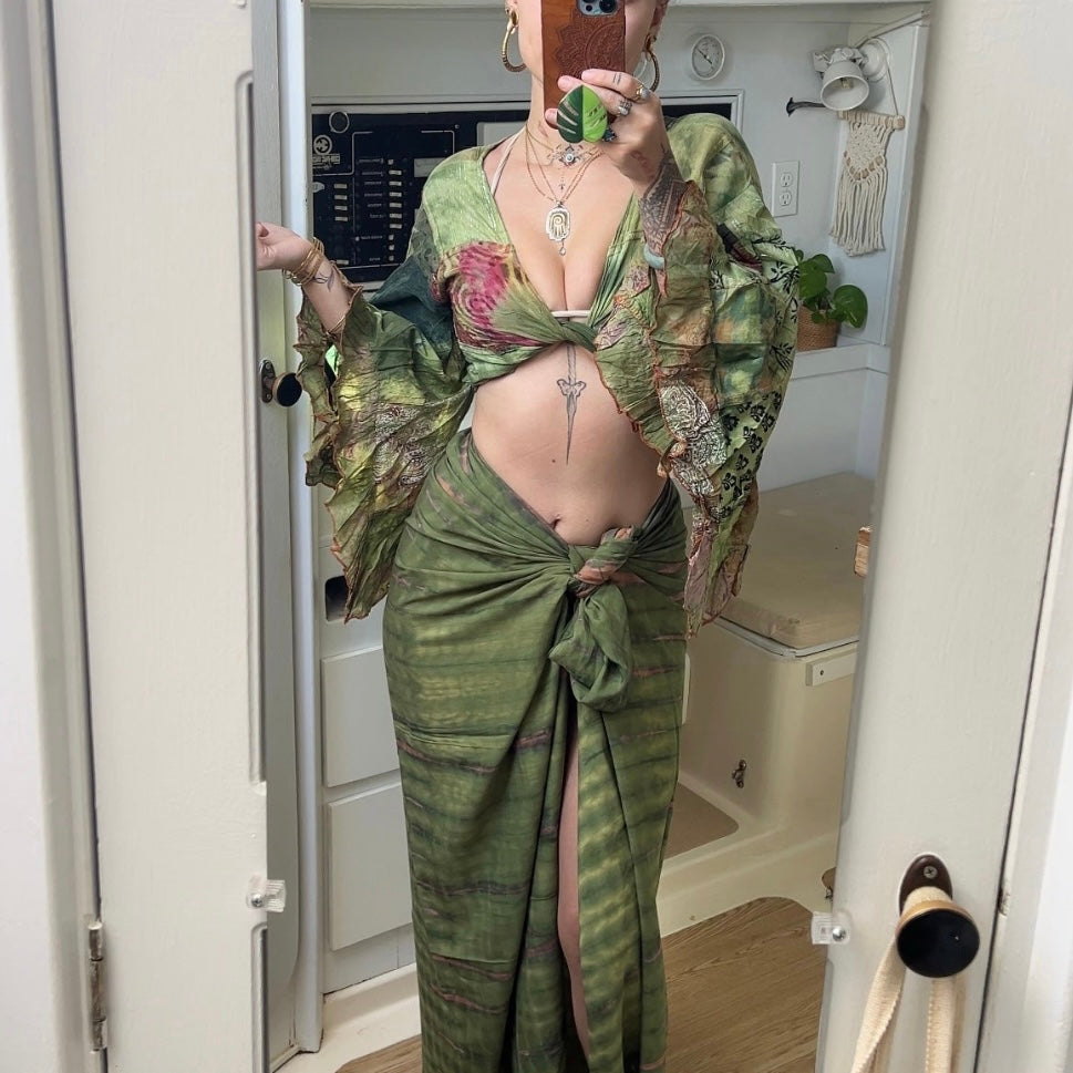 xSmall-large: this top wraps around in the middle so you can tie to your comfortability.