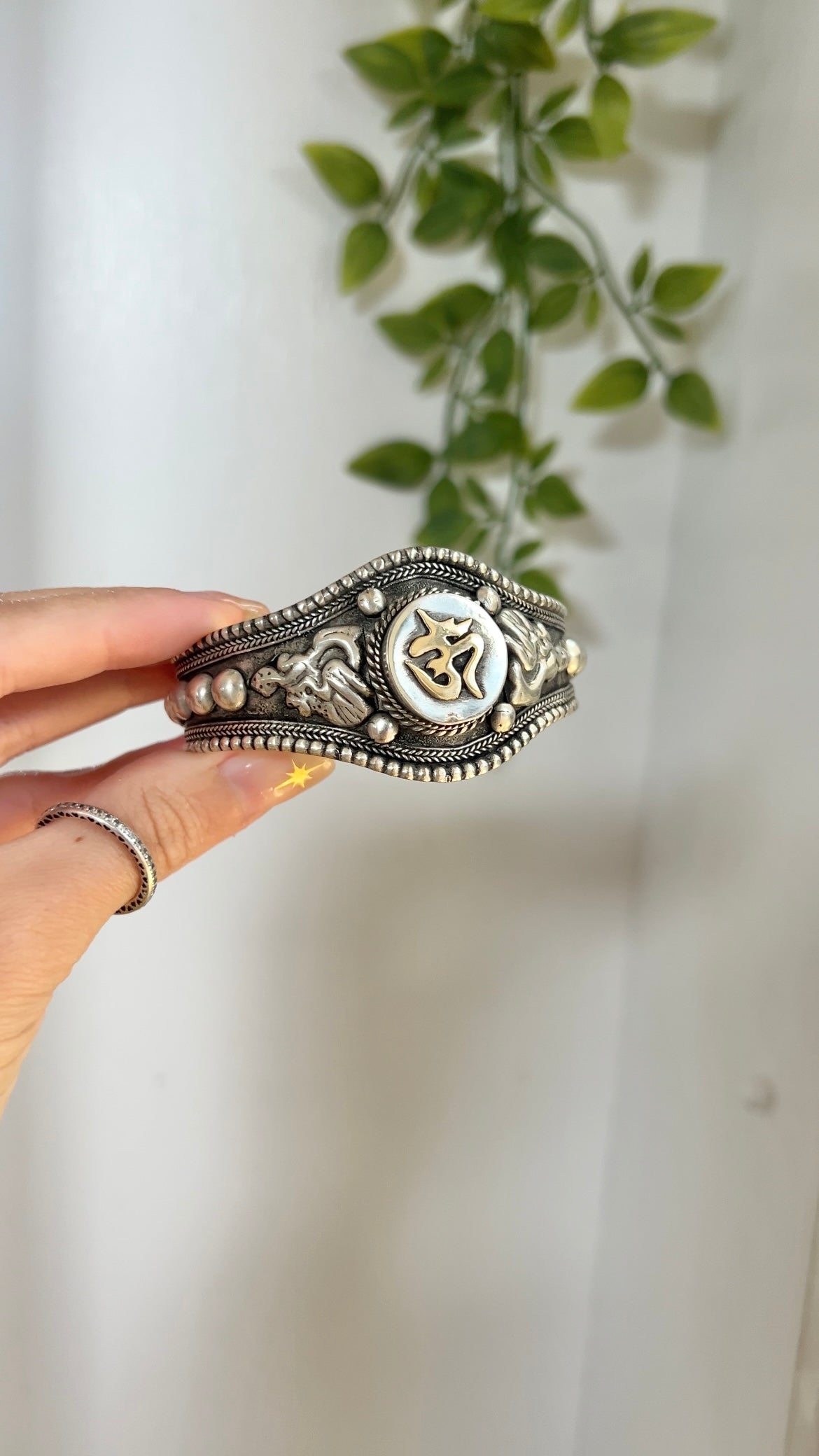 This listing is for 1 Om cuff as seen in the third photo only. all other bracelets in my product photos are just an example of how you can layer this piece. Hand made in Nepal 🤲🏼 Avoid contact with water
