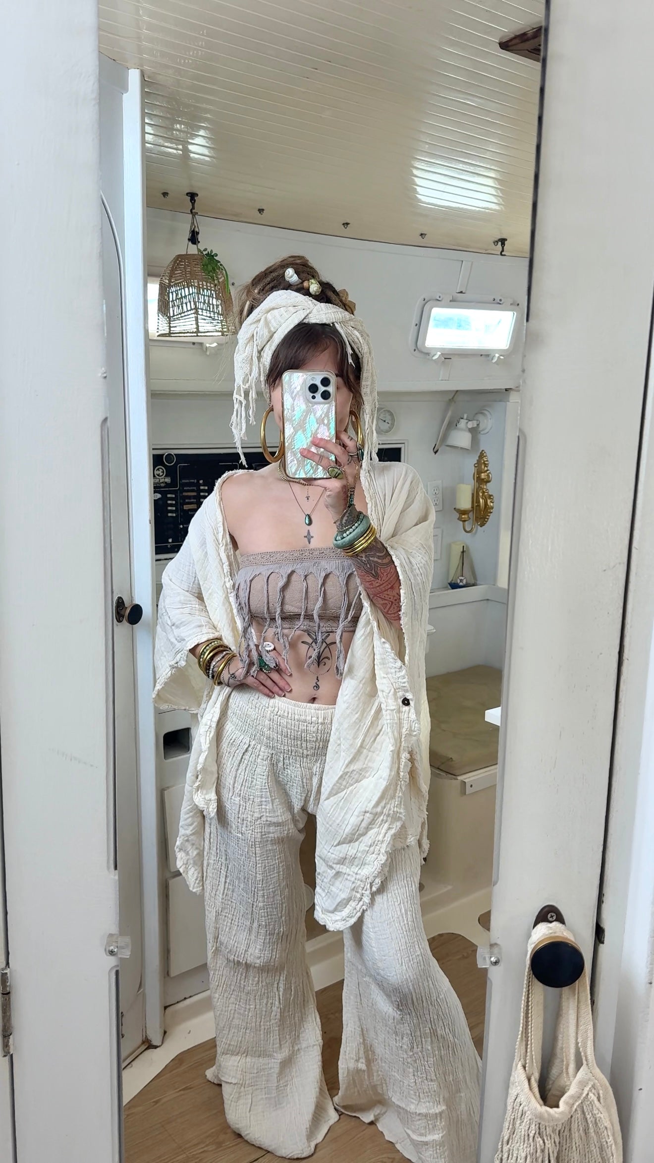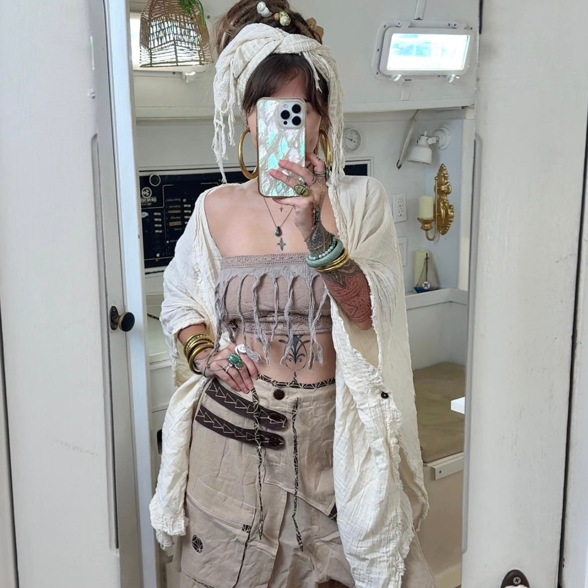 Creation Process: These pieces are meticulously handmade using premium, organic, raw materials and chemical free dyes. The team of artisans who took part of the creation process are not only paid a living wage, but create everything from scratch using sustainable zero waste practices. Crafted by skilled local artisans, these garments are created in harmony with nature- designed to honor the Earth while inspiring balance and mindfulness in your everyday life.